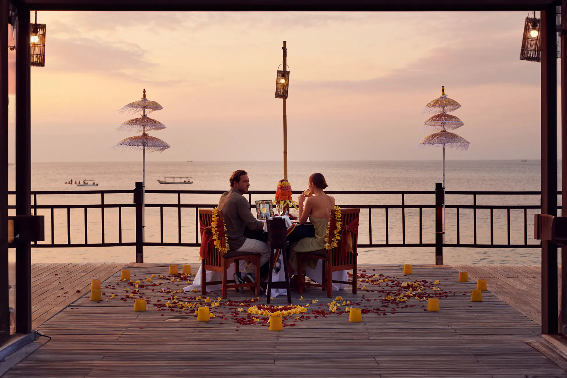 Experience a romantic evening at the Rooftop Gazebo Romantic Indian Candlelight Dinner in Downtown Legian, where authentic Indian cuisine meets a stunning cityscape. Enjoy a private ambiance adorned with candles and floral decorations, perfect for couples seeking a memorable dining experience. The venue enhances the atmosphere with Balinese welcome dances and live music, adding a unique cultural touch.