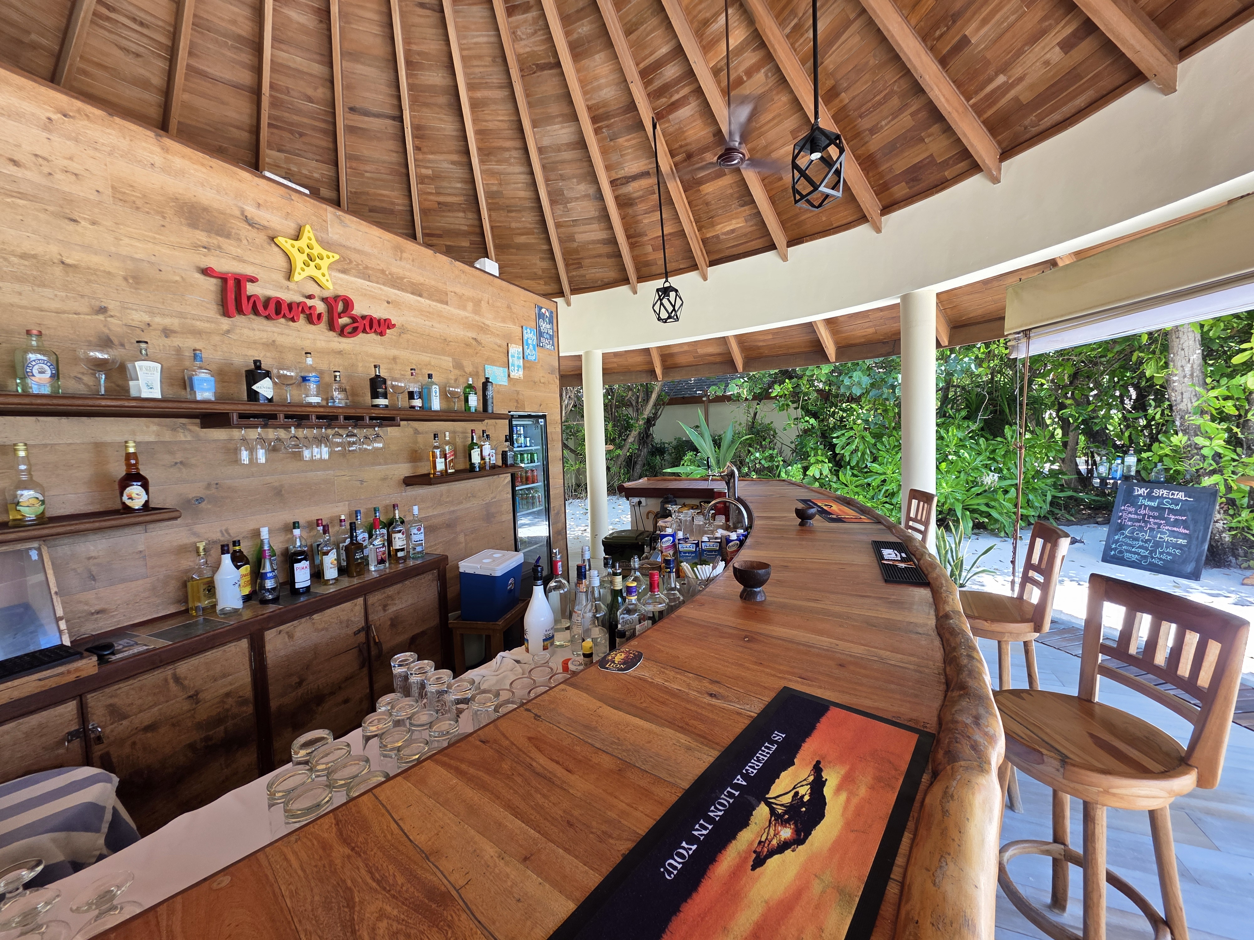 Savor refreshing beverages by the pool at Thari Bar, where stunning views of the Indian Ocean set the perfect backdrop for relaxation.
