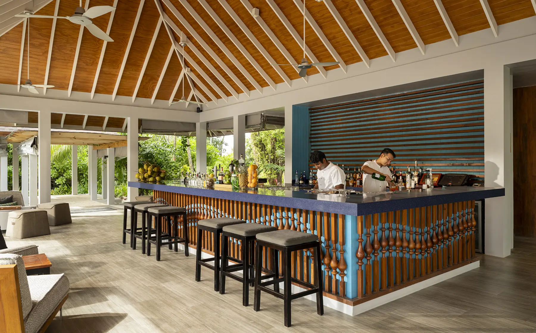 East Bar is where horizon views meet island living. Sip on exotic cocktails, premium wines, chilled beers, or a glass of bubbles as you take in the scenery. By day, it’s a laid-back beachfront retreat; by night, it transforms into a lively, social hub with light bites and great company.