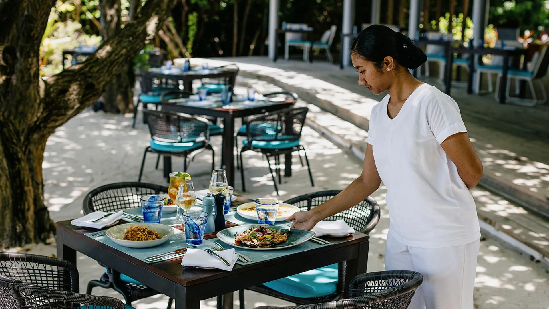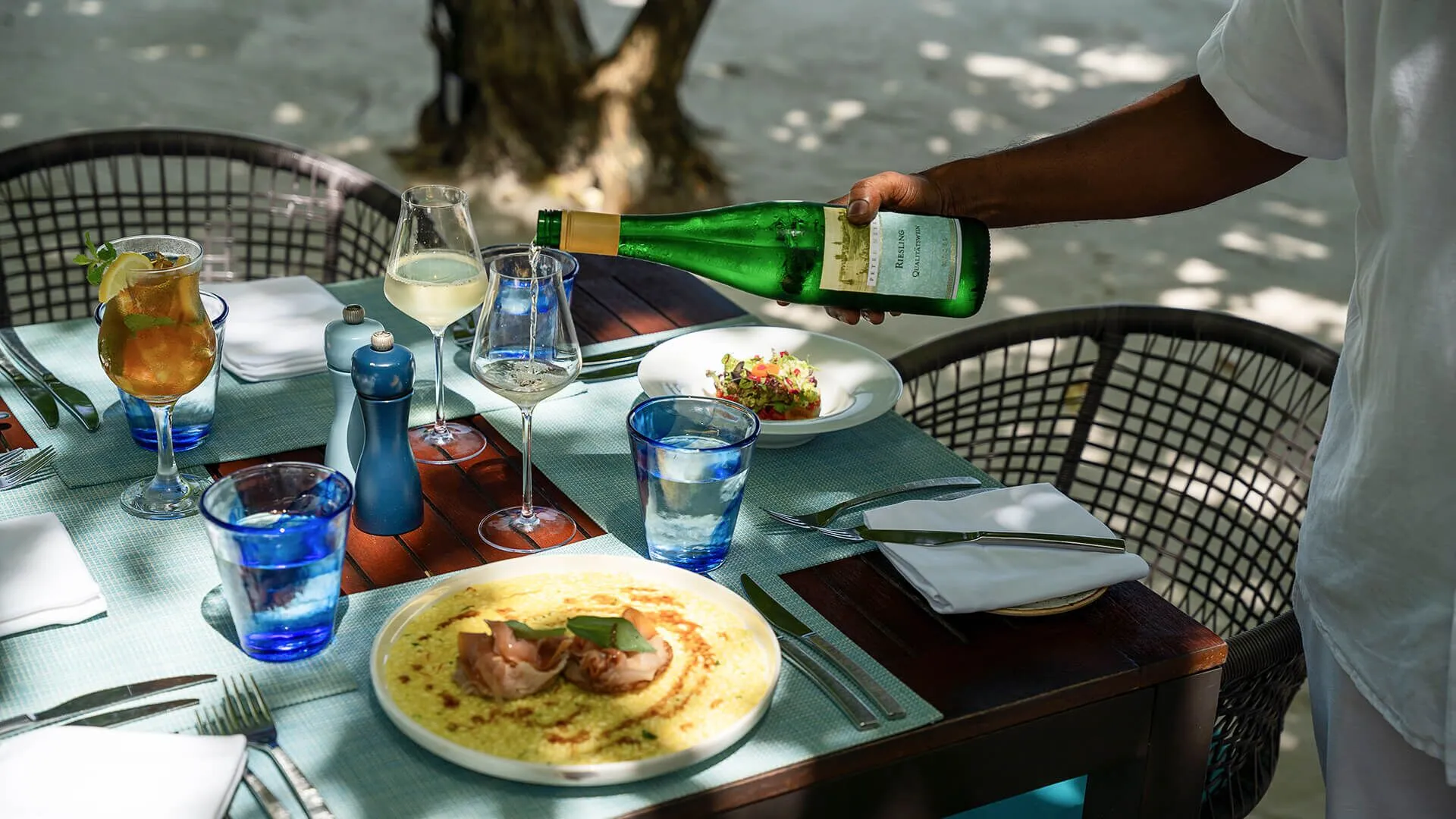 Faru brings the essence of the Mediterranean to the Maldivian shoreline. Savor flame-grilled seafood, prime cuts, and vibrant vegetarian dishes, each crafted in a simple, elegant style that lets natural flavors shine. By day, the atmosphere is bright and breezy; by night, sunsets give way to starlit dinners on the shore.