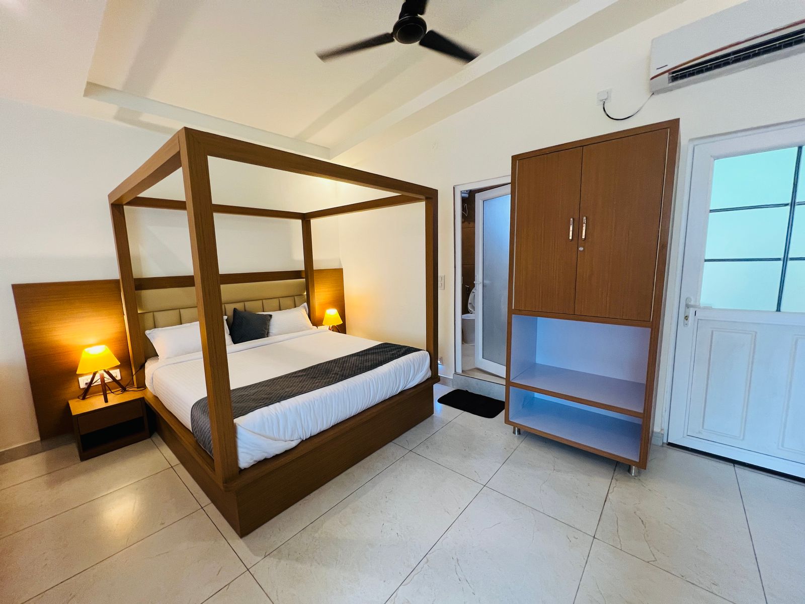- First-floor rooms with distinctive sloping roofs and fly ash brick construction, creating spacious and airy interiors.